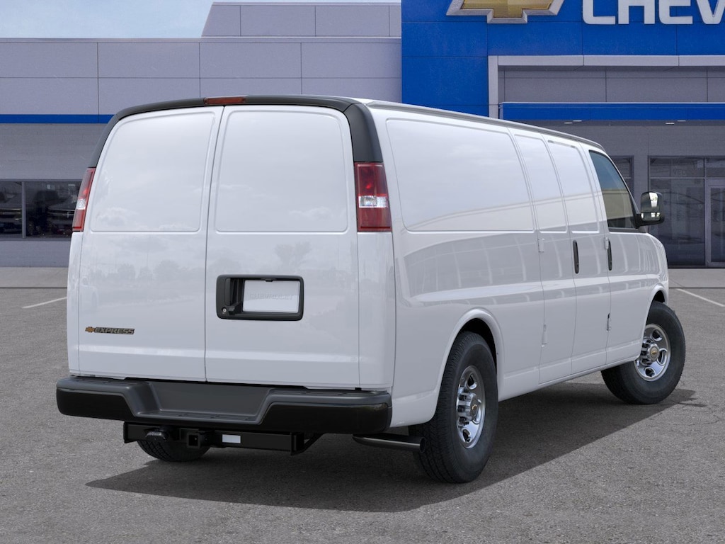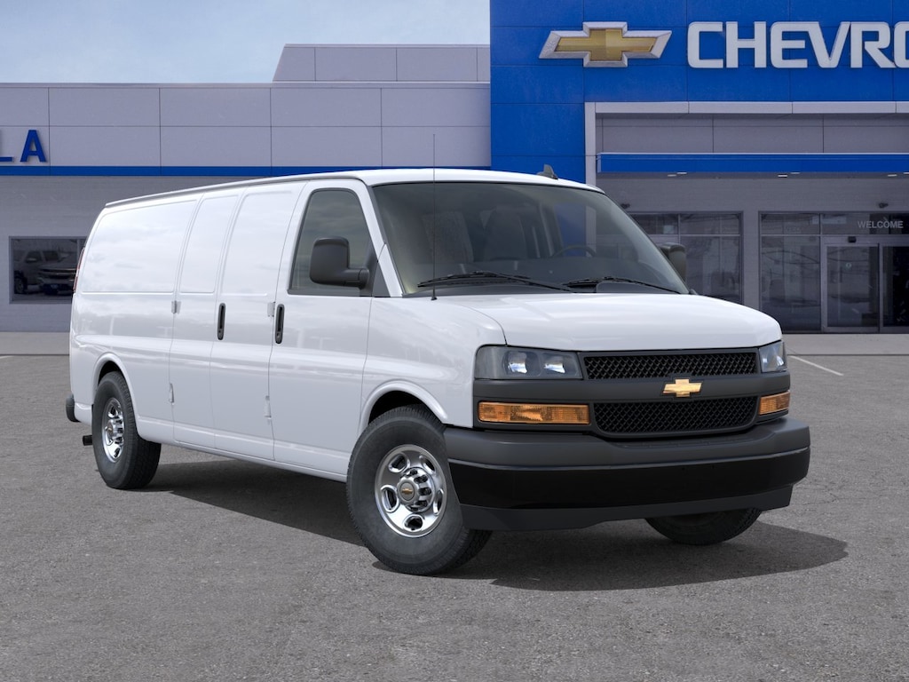 ENGINE, 6.6L V8 with Direct Injection and Variable Valve Timing, gasoline, (401 hp [299 kW] @ 5200 rpm, 464 lb-ft of torque [629 N-m] @ 4000 rpm) Includes external engine oil cooler. DIFFERENTIAL, HEAVY-DUTY LOCKING REAR, REMOTE VEHICLE STARTER SYSTEM, TRAILERING EQUIPMENT, HEAVY-DUTY includes trailering hitch platform and dual 4-pin/7-pin sealed connector (Includes (UY7) trailer wiring.), SEAT ADJUSTER, DRIVER 6-WAY POWER, REMOTE KEYLESS ENTRY with 2 transmitters and remote panic button, TRANSMISSION, 8-SPEED AUTOMATIC, HEAVY-DUTY, ELECTRONICALLY CONTROLLED with overdrive and tow/haul mode. Includes Cruise Grade Braking, Powertrain Grade Braking, and Tap-Up/Tap-Down Driver Shift Control, AUDIO SYSTEM, AM/FM STEREO WITH MP3 PLAYER seek-and-scan, digital clock, TheftLock, random select, auxiliary jack and 2 front door speakers (STD). Chevrolet Express Cargo Van with Summit White exterior and Neutral interior features a 8 Cylinder Engine with 401 HP at 5200 RPM*.