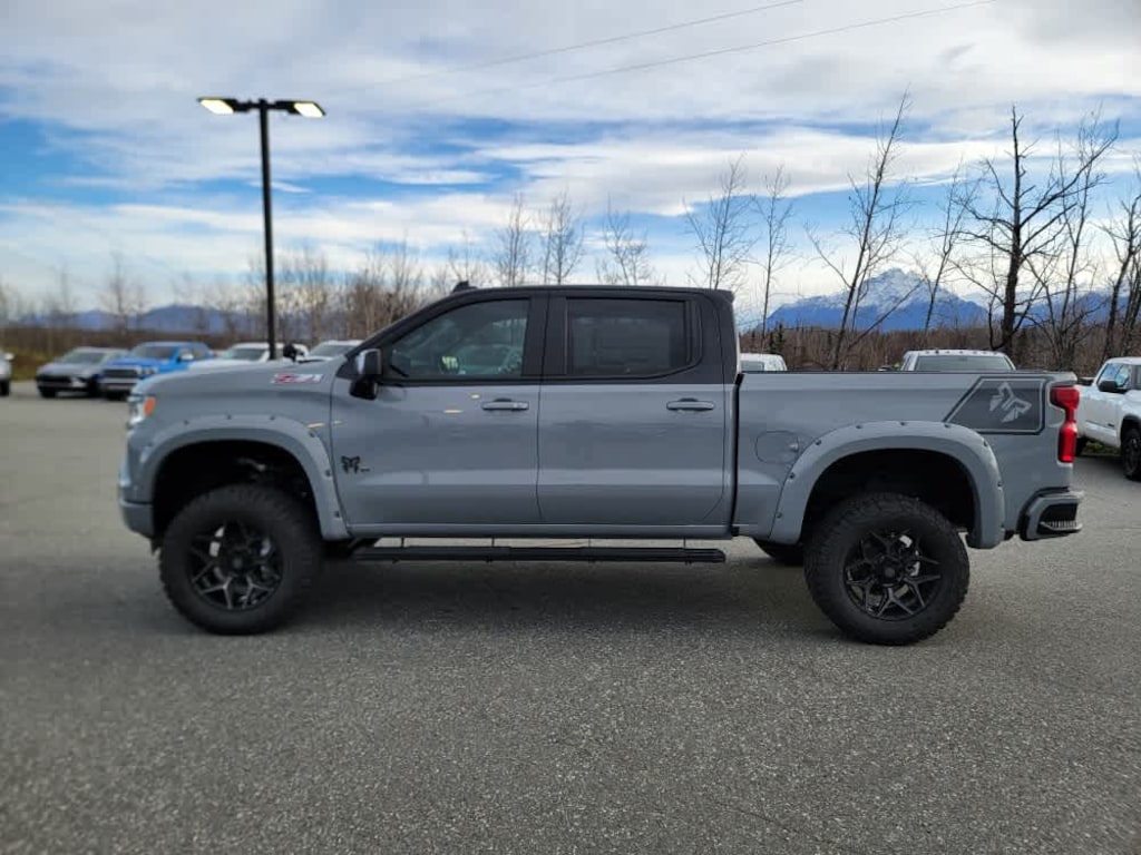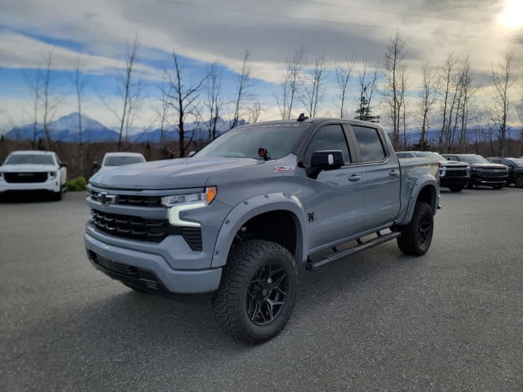 (420 hp [313 kW] @ 5600 rpm, 460 lb-ft of torque [624 Nm] @ 4100 rpm); featuring Dynamic Fuel Management that enables the engine to operate in 17 different patterns between 2 and 8 cylinders, depending on demand, to optimize power delivery and efficiency, includes (Z71) Off-Road suspension, (JHD) Hill Descent Control, (NZZ) skid plates and (K47) heavy-duty air filter Includes Z71 hard badge, (N10) dual exhaust, (RCV) 18" bright silver painted wheels, (XCK) 265/65R18 all-terrain, blackwall tires and (NQH) 2-speed transfer case. includes (UG1) Universal Home Remote, (A48) rear sliding power window, (PZ8) Hitch Guidance with Hitch View and (UET) Trailering App Includes (UQA) Bose Premium Sound System.), includes (UV2) HD Surround Vision, (UD5) Front and Rear Park Assist, (TRG) Trailer Camera Provisions, (UKV) Trailer Side Blind Zone Alert, (UFB) Rear Cross Traffic Braking, (UKK) Rear Pedestrian Alert and (U12) Perimeter Lighting, includes (B1J) wheel house liners and (CGN) Chevytec spray-on bedliner, with center console (Includes (EPH) Electronic Transmission Range Selector (console mounted). with Google built-in compatibility (select service plan required, terms and limitations apply) including navigation capability, 13.4" diagonal HD color touchscreen, includes multi-touch display, AM/FM stereo, Bluetooth® streaming audio for music and most phones; featuring Wireless Apple CarPlay® and Wireless Android Auto® capability for compatible phones, advanced voice recognition, in-vehicle apps, personalized profiles for infotainment and vehicle settings (STD), with Electronic Transmission Range Selector, (ETRS), electronically controlled with overdrive, tow/haul mode and steering column paddle shifters. Includes Cruise Grade Braking and Powertrain Grade Braking. Chevrolet RST with Slate Gray Metallic exterior and Jet Black interior features a 8 Cylinder Engine with 420 HP at 5600 RPM*.