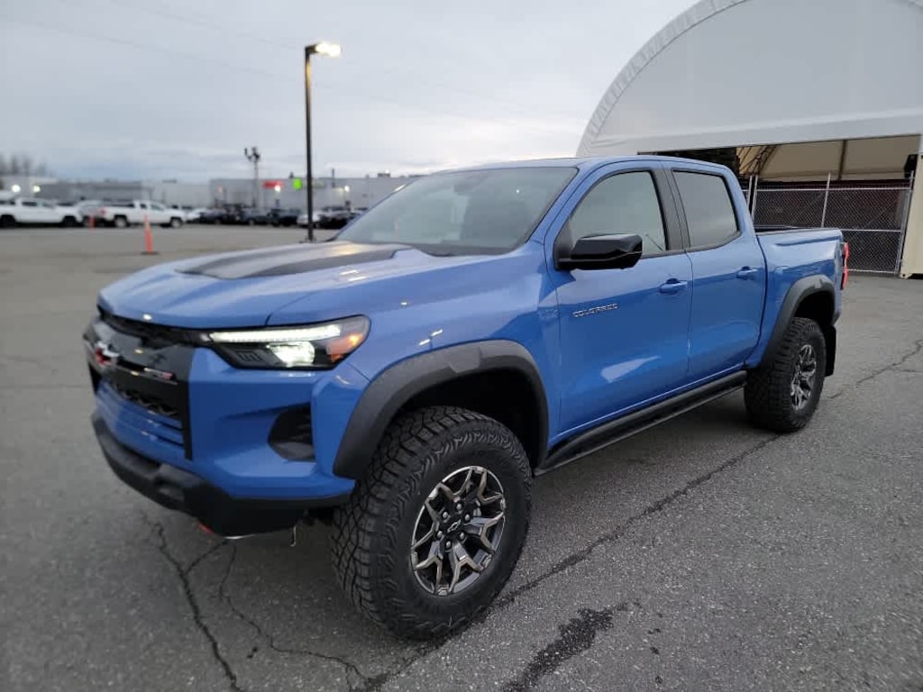 includes (KSG) Adaptive Cruise Control, (UKK) Rear Pedestrian Alert and (UV2) HD Surround Vision (Includes (UQA) Bose Premium Audio System.), SUNROOF, POWER SLIDING GLASS WITH MANUAL SHADE, includes Chevrolet logo, (dealer-installed), (310 hp [231 kW] @ 5600 rpm, 430 lb-ft of torque [583 Nm] @ 3000 rpm) (STD), (STD). Chevrolet 4WD ZR2 with Reef Blue Metallic exterior and Jet Black/Artemis interior features a 4 Cylinder Engine with 310 HP at 5600 RPM*.