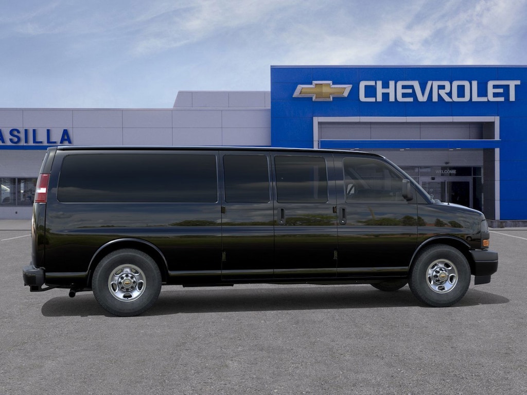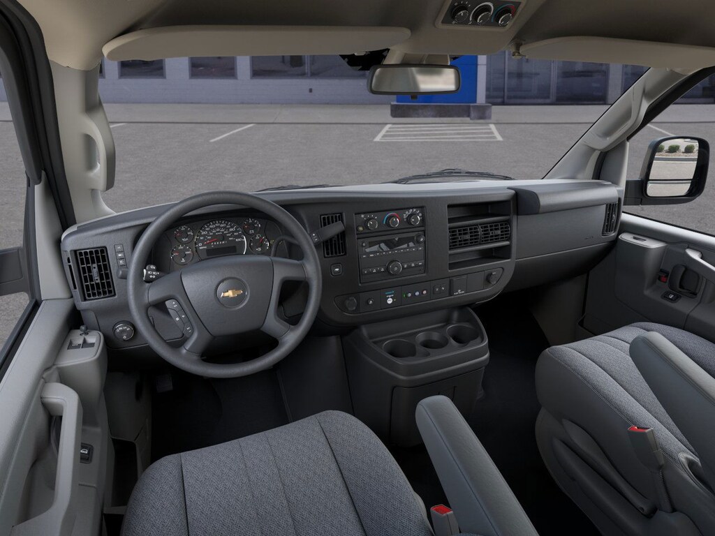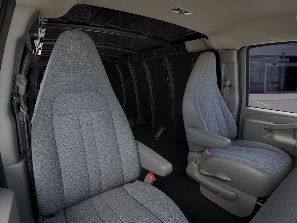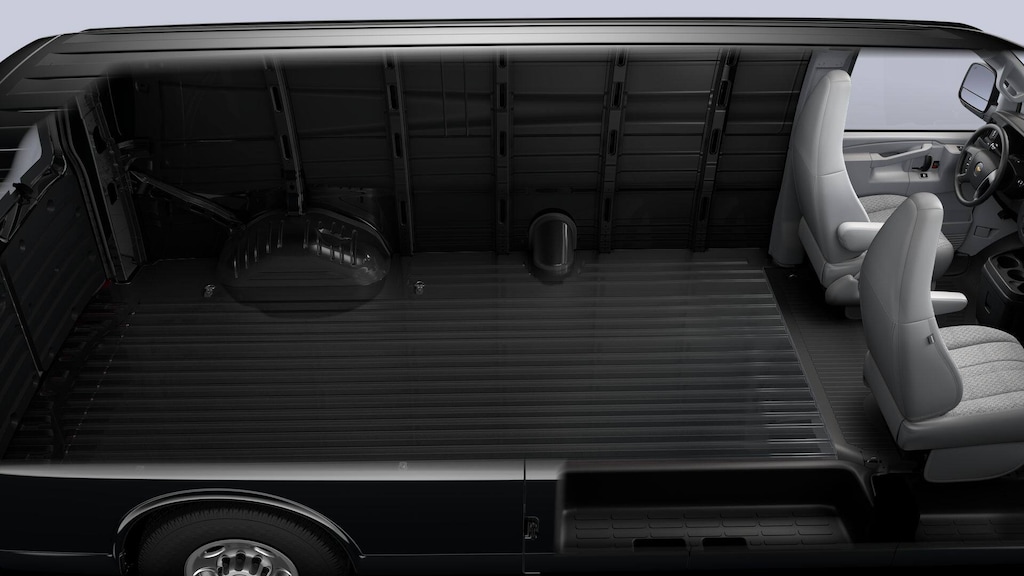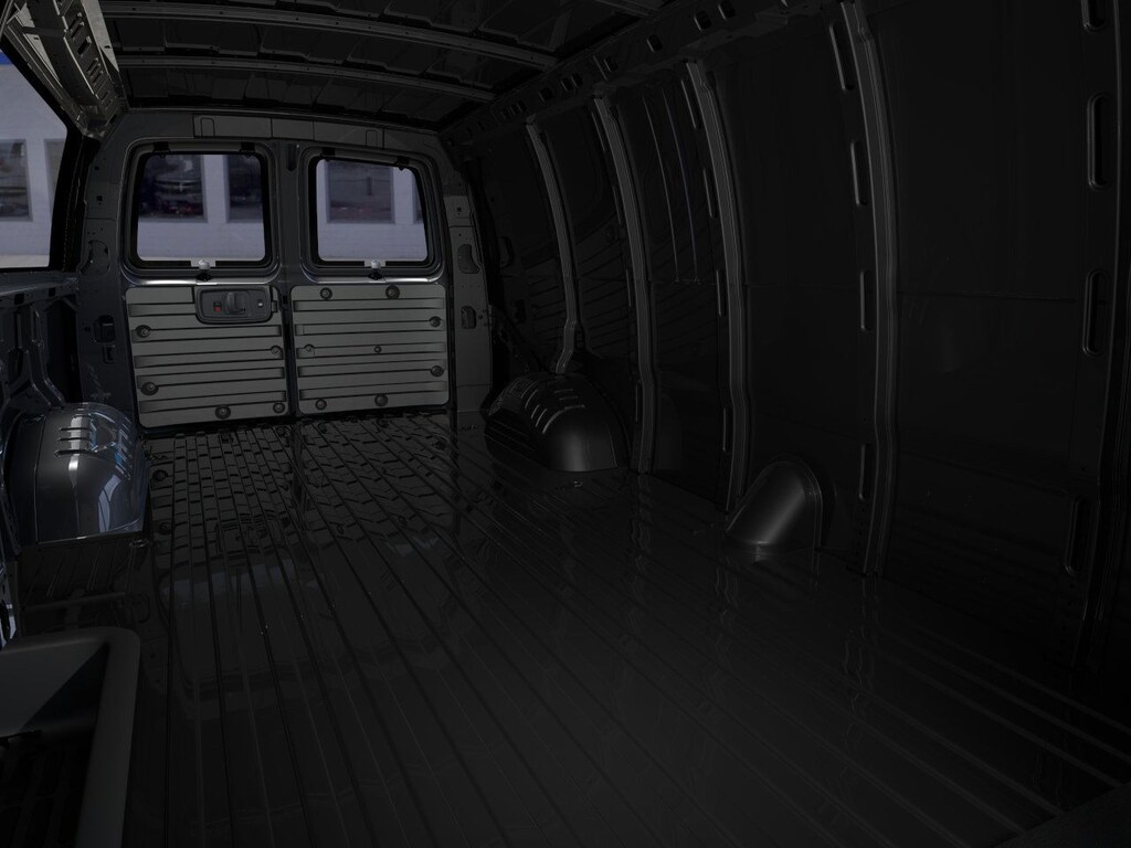 ENGINE, 6.6L V8 with Direct Injection and Variable Valve Timing, gasoline, (401 hp [299 kW] @ 5200 rpm, 464 lb-ft of torque [629 N-m] @ 4000 rpm) Includes external engine oil cooler. AIR CONDITIONING, REAR Includes (C36) rear heater. DRIVER CONVENIENCE PACKAGE includes Tilt-Wheel and (K34) cruise control, DIFFERENTIAL, HEAVY-DUTY LOCKING REAR, SIDE BLIND ZONE ALERT, REMOTE VEHICLE STARTER SYSTEM, REAR PARK ASSIST, FORWARD COLLISION ALERT Includes (UFL) Lane Departure Warning. TRAILERING EQUIPMENT, HEAVY-DUTY includes trailering hitch platform and dual 4-pin/7-pin sealed connector Includes (UY7) trailer wiring.), SEAT ADJUSTER, DRIVER 6-WAY POWER, SEAT ADJUSTER, FRONT PASSENGER 6-WAY POWER, REMOTE KEYLESS ENTRY with 2 transmitters and remote panic button, GLASS, SOLAR-RAY DEEP-TINTED (all windows except light-tinted glass on windshield and driver- and front passenger-side glass), TRANSMISSION, 8-SPEED AUTOMATIC, HEAVY-DUTY, ELECTRONICALLY CONTROLLED with overdrive and tow/haul mode. Includes Cruise Grade Braking, Powertrain Grade Braking, and Tap-Up/Tap-Down Driver Shift Control, AUDIO SYSTEM, AM/FM STEREO WITH MP3 PLAYER seek-and-scan, digital clock, TheftLock, random select, auxiliary jack and 2 front door speakers (STD). Chevrolet Express Cargo Van with Black exterior and Medium Pewter interior features a 8 Cylinder Engine with 401 HP at 5200 RPM*.