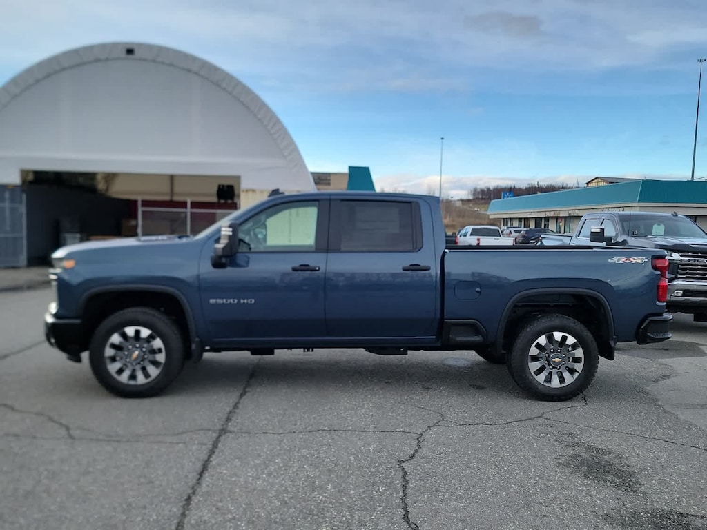 includes (BTV) Remote Start with (UTJ) content theft alarm, (KI4) 120-volt power outlet, (KC9) 120-volt bed-mounted power outlet, (UBI) 2 charge-only USB ports for second row, (C49) rear-window defogger, (A2X) 10-way power driver seat including power lumbar, (UF2) bed LED cargo area lighting, (QT5) EZ Lift power lock and release tailgate (Included with (PDX) Custom Value Package. Beginning with the start of production certain vehicles will be forced to include (RFO) Not Equipped with USB ports rear.), 1st and 2nd rows on Crew Cab and Double Cab, (includes Chevrolet Bowtie logo on front mats), 7" diagonal HD color touchscreen, AM/FM stereo, Bluetooth® audio streaming for 2 active devices, voice command pass-through to phone, Wireless Apple CarPlay® and Wireless Android Auto® compatibility (STD), with Direct Injection and Variable Valve Timing, gasoline, (401 hp [299 kW] @ 5200 rpm, 464 lb-ft of torque [629 N-m] @ 4000 rpm) (STD), (STD). Chevrolet Custom with Lakeshore Blue Metallic exterior and Jet Black interior features a 8 Cylinder Engine with 401 HP at 5200 RPM*.