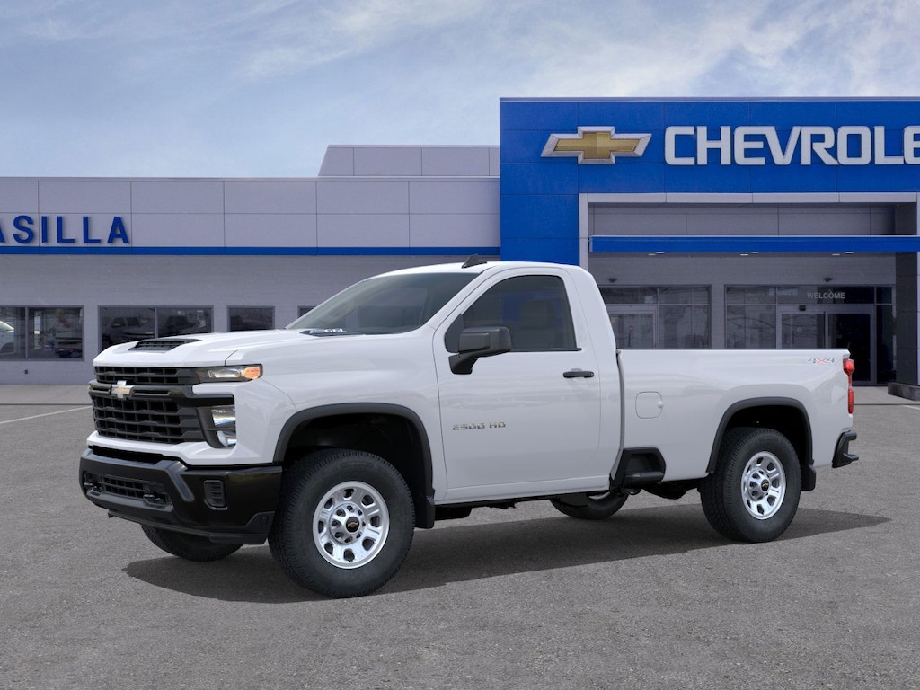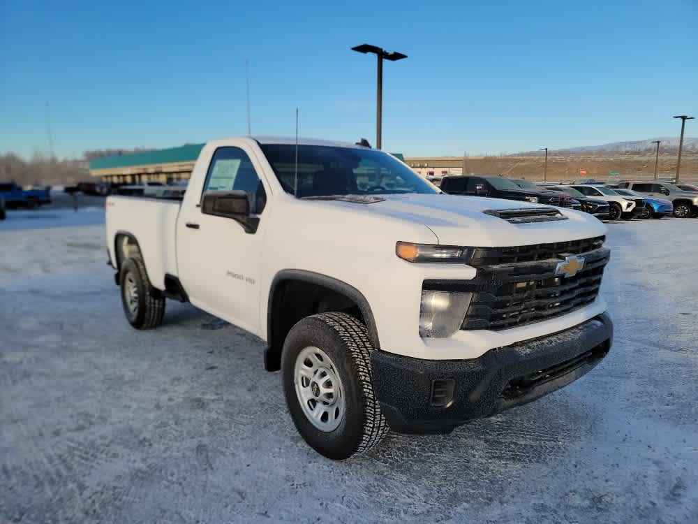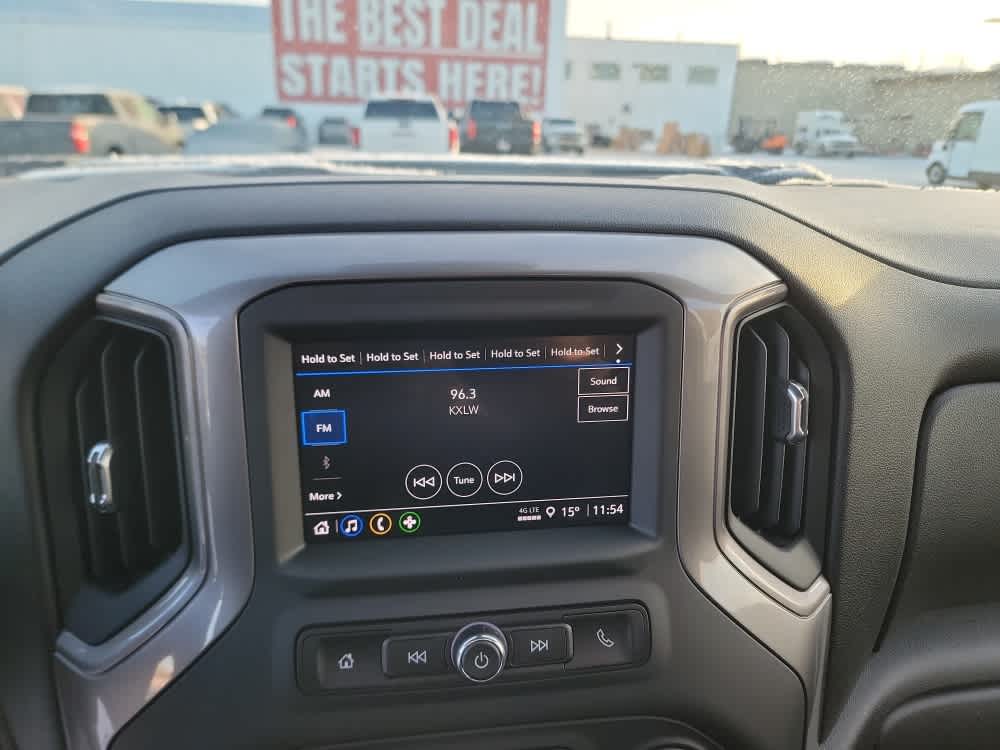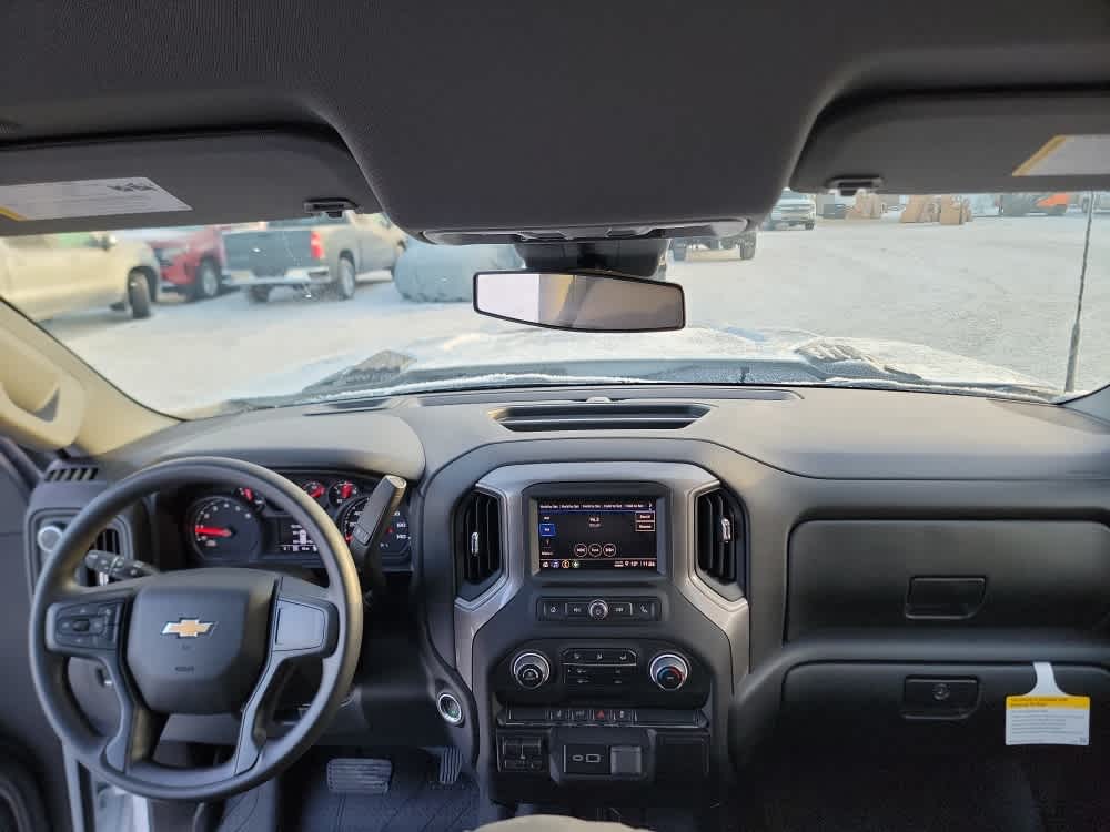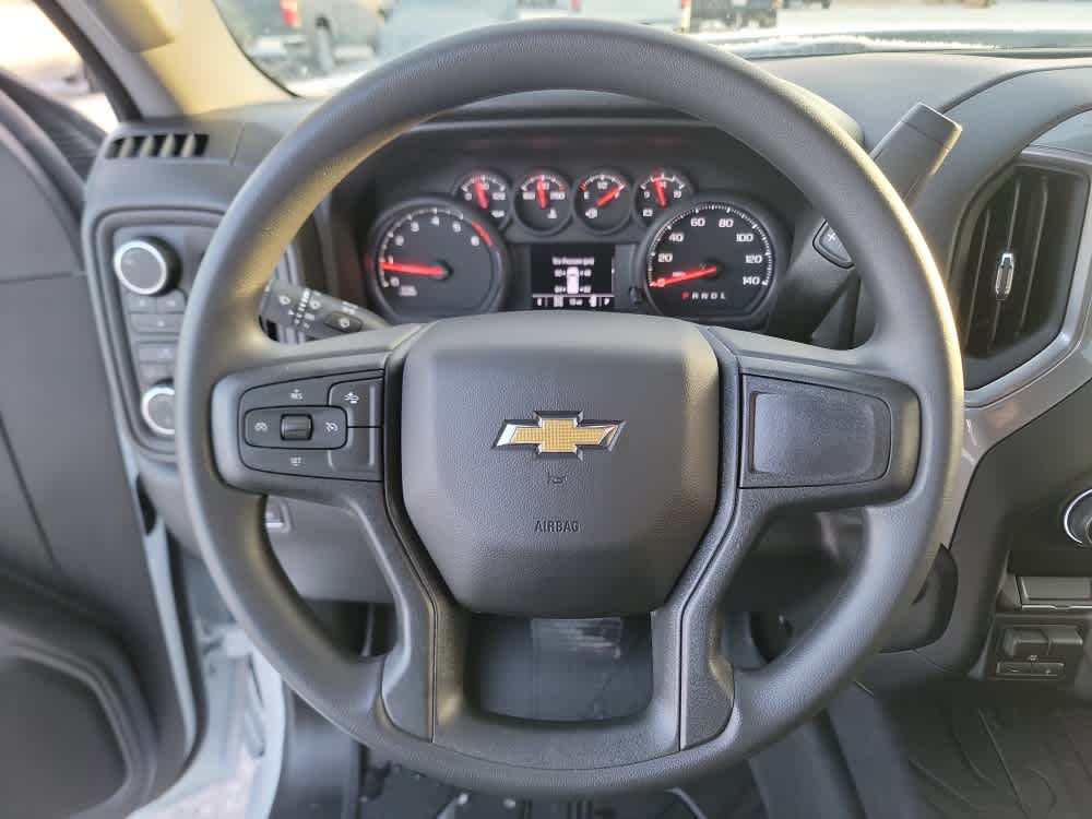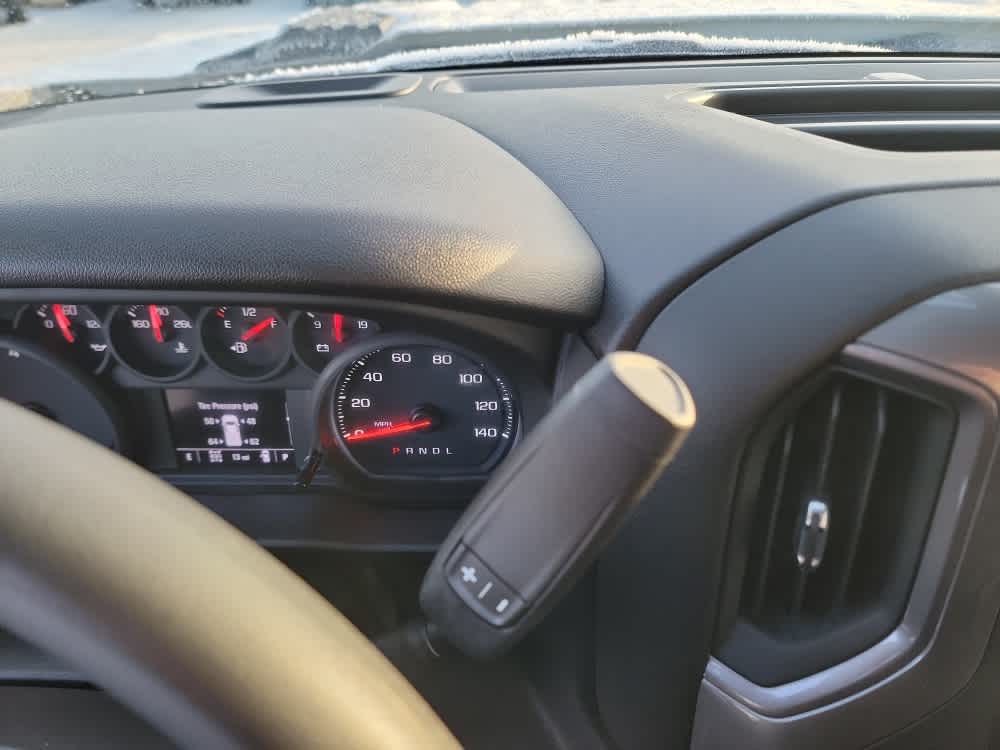 WHEELS, 18" (45.7 CM) PAINTED STEEL, GLASS, DEEP-TINTED, (Passenger mirror includes flat glass, not convex) smaller non-trailer mirror, 11.2" (284.73mm) x 7.15" (181.69mm), 7" diagonal HD color touchscreen, AM/FM stereo, Bluetooth® audio streaming for 2 active devices, voice command pass-through to phone, Wireless Apple CarPlay® and Wireless Android Auto® compatibility (STD), with Direct Injection and Variable Valve Timing, gasoline, (401 hp [299 kW] @ 5200 rpm, 464 lb-ft of torque [629 N-m] @ 4000 rpm) (STD), (STD). Chevrolet Work Truck with Summit White exterior and Jet Black interior features a 8 Cylinder Engine with 401 HP at 5200 RPM*.