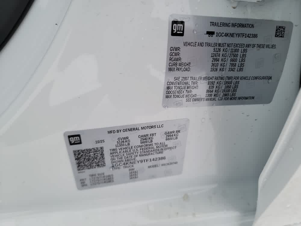 B20-Diesel compatible, (470 hp [350.5 kW] @ 2800 rpm, 975 lb-ft of torque [1322 Nm] @ 1600 rpm), includes (UF2) Cargo bed LED lighting, (CJ2) dual-zone automatic climate control, (A2X) 10-way power driver seat including power lumbar, (N37) manual tilt/telescoping steering column, (T3U) LED fog lamps, Black (does not include spray-on liner on tailgate due to Black composite inner panel), includes (BTV) Remote Start, (UTJ) Theft Deterrent System and (C49) rear-window defogger, includes (Z71) Off-Road suspension with off-road tuned twin tube Rancho shocks, (JHD) Hill Descent Control and (NZZ) skid plates (transfer case and oil pan) (Includes (QXT) LT265/70R17 all-terrain, blackwall tires and molded in color Black grille. includes (KA1) Heated driver and passenger seats and (KI3) Heated steering wheel, with Silver painted accents, 6-spoke, 1st and 2nd rows, (includes Z71 logo on front mats), with Google built-in compatibility (select service plan required, terms and limitations apply) including navigation capability, 13.4" diagonal HD color touchscreen, includes multi-touch display, AM/FM stereo, Bluetooth® streaming audio for music and most phones; featuring Wireless Apple CarPlay® and Wireless Android Auto® capability for compatible phones, advanced voice recognition, in-vehicle apps, personalized profiles for infotainment and vehicle settings (STD), TRANSMISSION, 10-SPEED AUTOMATIC. Chevrolet LT with Summit White exterior and Jet Black interior features a 8 Cylinder Engine with 470 HP at 2800 RPM*.