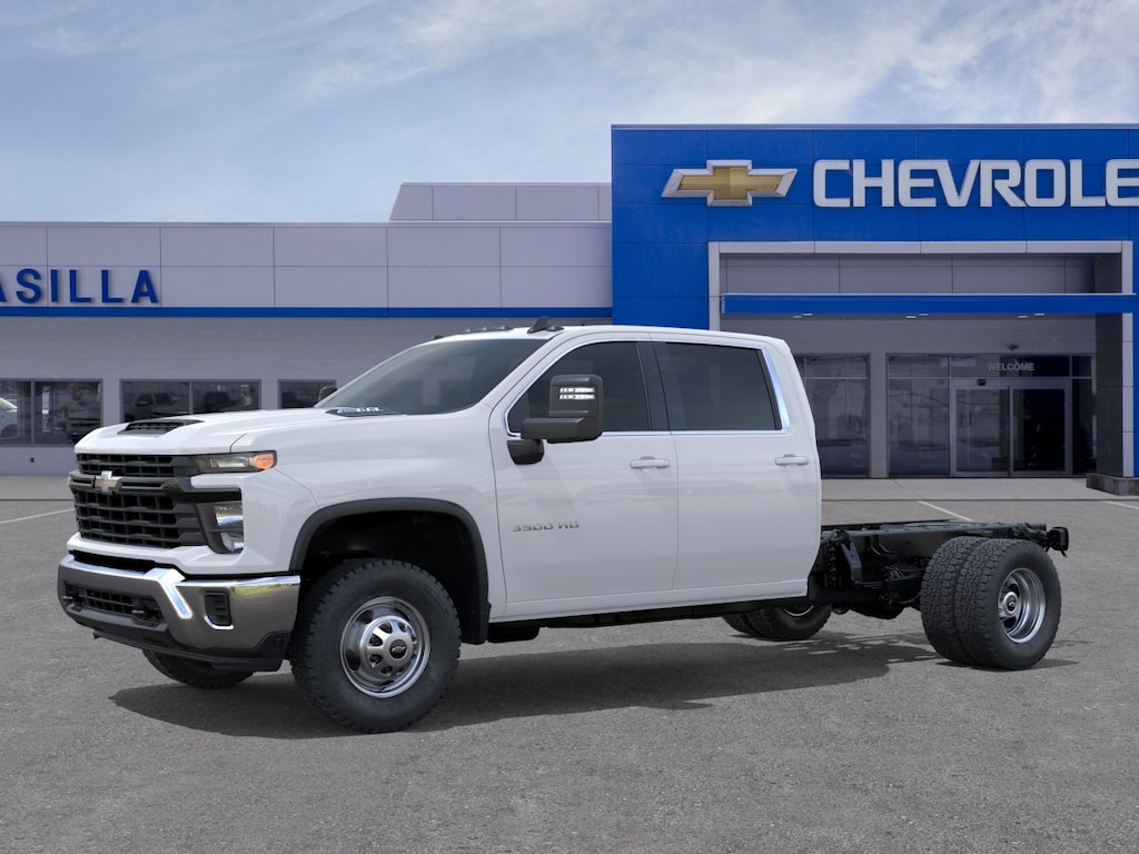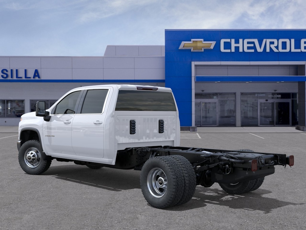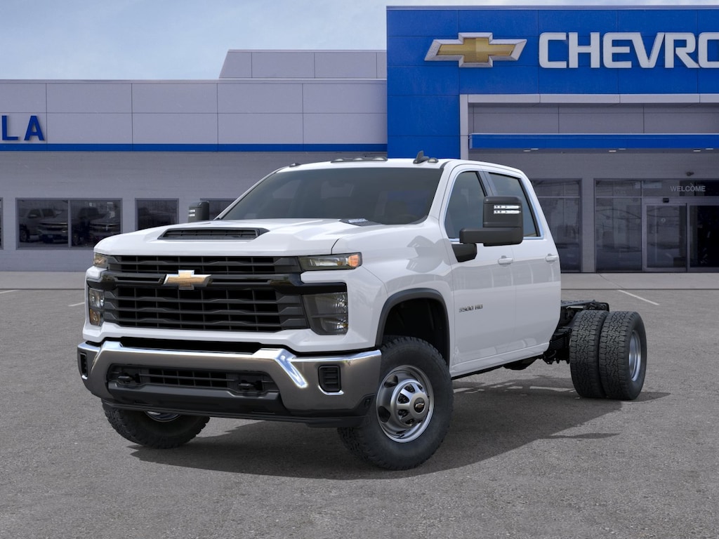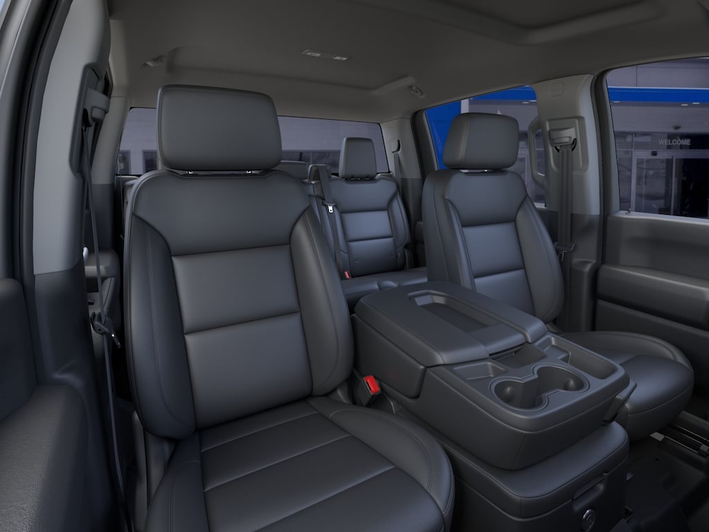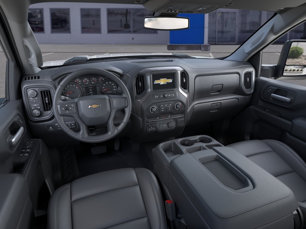 MIRRORS, OUTSIDE POWER-ADJUSTABLE VERTICAL TRAILERING WITH HEATED AND AUTO-DIMMING UPPER GLASS lower convex mirrors, turn signal indicators, puddle lamps, (U12) perimeter lighting, auxiliary lighting, power folding/manual extending (extends 3.31" [84.25mm]), Black Includes (DD8) auto-dimming rearview mirror.), WT CONVENIENCE PACKAGE includes (AKO) tinted windows, (C49) rear-window defogger and (DBG) power trailer mirrors with heated upper glass and manual extending/folding, GLASS, DEEP-TINTED, AUDIO SYSTEM, CHEVROLET INFOTAINMENT 3 SYSTEM, 7" DIAGONAL HD COLOR TOUCHSCREEN, AM/FM STEREO Bluetooth® audio streaming for 2 active devices, voice command pass-through to phone, Wireless Apple CarPlay® and Wireless Android Auto® compatibility (STD), ENGINE, 6.6L V8 WITH DIRECT INJECTION AND VARIABLE VALVE TIMING, GASOLINE (401 hp [299 kW] @ 5200 rpm, 464 lb-ft of torque [629 N-m] @ 4000 rpm) (STD), TRANSMISSION, 10-SPEED AUTOMATIC (STD). Chevrolet Work Truck with Summit White exterior and Jet Black interior features a 8 Cylinder Engine with 401 HP at 5200 RPM*.