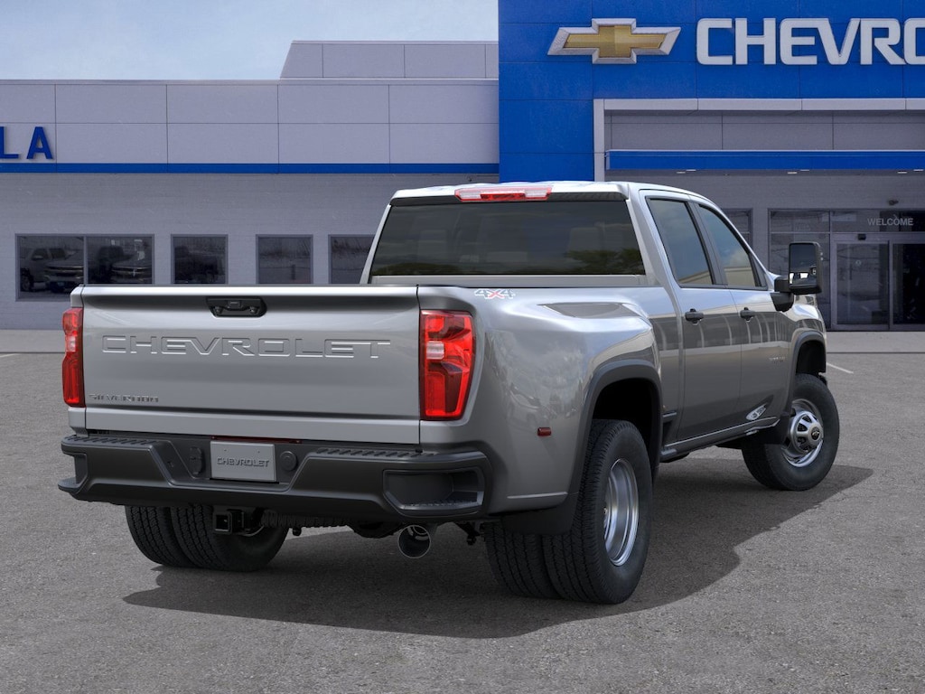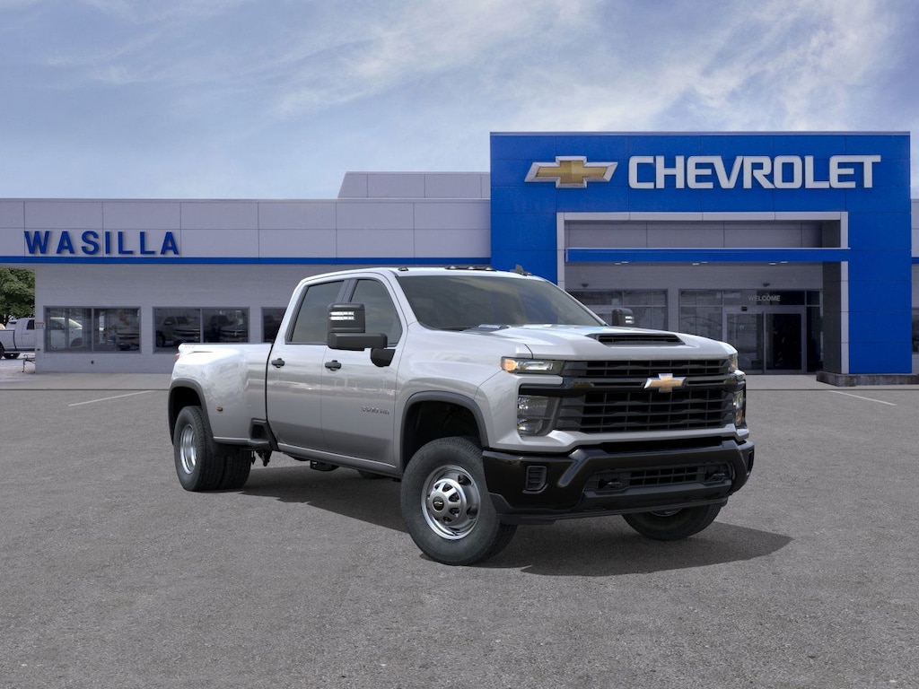 ENGINE, DURAMAX 6.6L TURBO-DIESEL V8, B20-DIESEL COMPATIBLE (470 hp [350.5 kW] @ 2800 rpm, 975 lb-ft of torque [1322 Nm] @ 1600 rpm), GOOSENECK / 5TH WHEEL PREP PACKAGE -- Hitch platform to accept Gooseneck or 5th Wheel hitch. Includes hitch platform with tray to accept ball, stamped bed holes with removable caps installed and bed mounted 7-pin trailer harness (similar to UY2 harness). (Includes (CGN) Chevytec spray-on bedliner. WT CONVENIENCE PACKAGE includes (QT5) EZ Lift power lock and release tailgate, (AKO) tinted windows, (C49) rear-window defogger, (DBG) power trailer mirrors with heated upper glass and manual extending/folding, MIRRORS, OUTSIDE POWER-ADJUSTABLE VERTICAL TRAILERING WITH HEATED UPPER GLASS lower convex mirrors, integrated turn signals, manual folding/extending (extends 3.31" [84.25mm]), GLASS, DEEP-TINTED, GVWR, 14,000 LBS. (6350 KG) WITH DUAL REAR WHEELS, AUDIO SYSTEM, CHEVROLET INFOTAINMENT 3 SYSTEM, 7" DIAGONAL HD COLOR TOUCHSCREEN, AM/FM STEREO Bluetooth® audio streaming for 2 active devices, voice command pass-through to phone, Wireless Apple CarPlay® and Wireless Android Auto® compatibility (STD), TRANSMISSION, 10-SPEED AUTOMATIC. Chevrolet Work Truck with Sterling Gray Metallic exterior and Jet Black interior features a 8 Cylinder Engine with 470 HP at 2800 RPM*.
