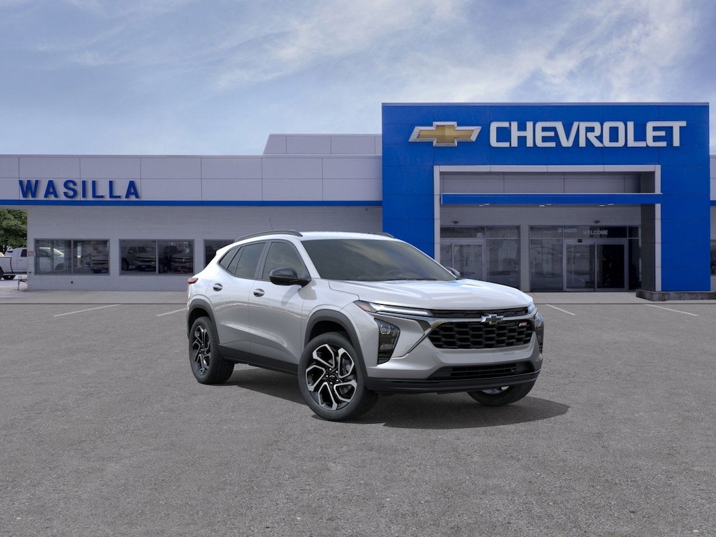 LPO, ALL-WEATHER FLOOR LINERS, FRONT AND REAR Jet Black. AUDIO SYSTEM, 11" DIAGONAL HD COLOR TOUCHSCREEN AM/FM stereo. Additional features for compatible phones include: Bluetooth® audio streaming for 2 active devices, voice command pass-through to phone, wireless Apple CarPlay® and wireless Android Auto® capable (STD), ENGINE, ECOTEC 1.2L TURBO DOHC DI WITH VARIABLE VALVE TIMING (VVT) E85-compatible (137 hp [102 kW] @ 5000 rpm, 162 lb-ft torque [219 N-m] @ 2500 rpm) (STD), TRANSMISSION, 6-SPEED AUTOMATIC (STD). Chevrolet 2RS with Sterling Gray Metallic exterior and Jet Black with Red accents interior features a 3 Cylinder Engine with 137 HP at 5000 RPM*.