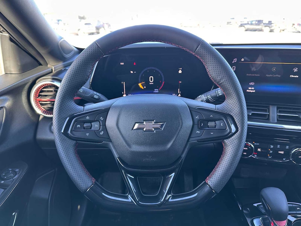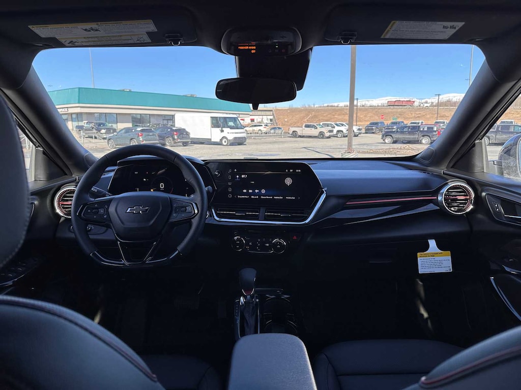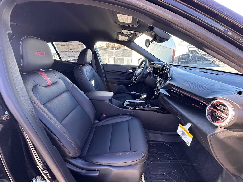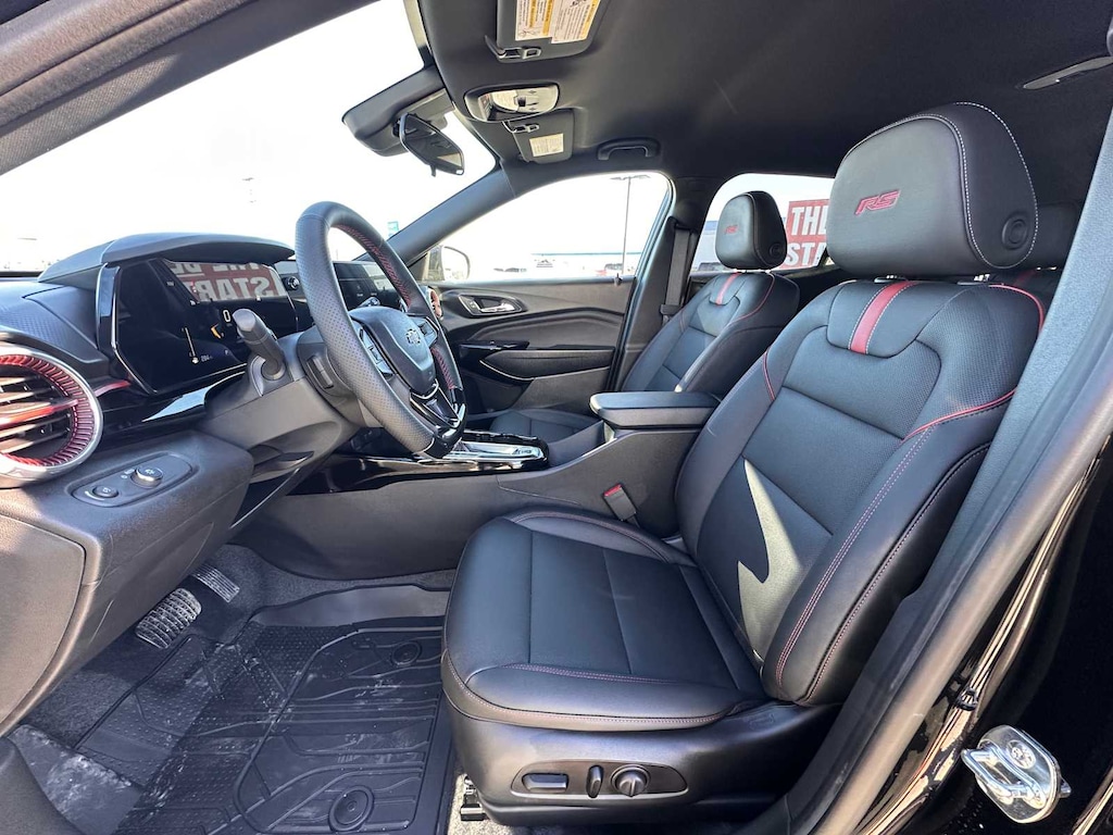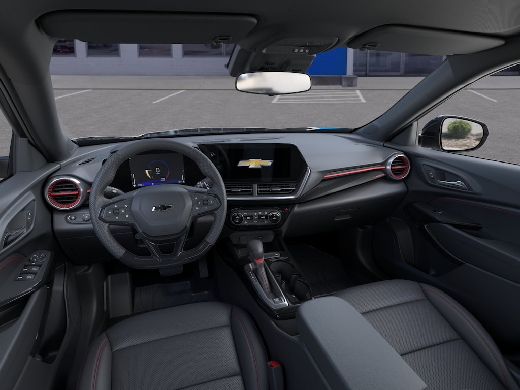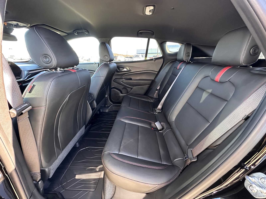 LPO, ALL-WEATHER FLOOR LINERS, FRONT AND REAR Jet Black. AUDIO SYSTEM, 11" DIAGONAL HD COLOR TOUCHSCREEN AM/FM stereo. Additional features for compatible phones include: Bluetooth® audio streaming for 2 active devices, voice command pass-through to phone, wireless Apple CarPlay® and wireless Android Auto® capable (STD), ENGINE, ECOTEC 1.2L TURBO DOHC DI WITH VARIABLE VALVE TIMING (VVT) E85-compatible (137 hp [102 kW] @ 5000 rpm, 162 lb-ft torque [219 N-m] @ 2500 rpm) (STD), TRANSMISSION, 6-SPEED AUTOMATIC (STD). Chevrolet 2RS with Mosaic Black Metallic exterior and Jet Black with Red accents interior features a 3 Cylinder Engine with 137 HP at 5000 RPM*.