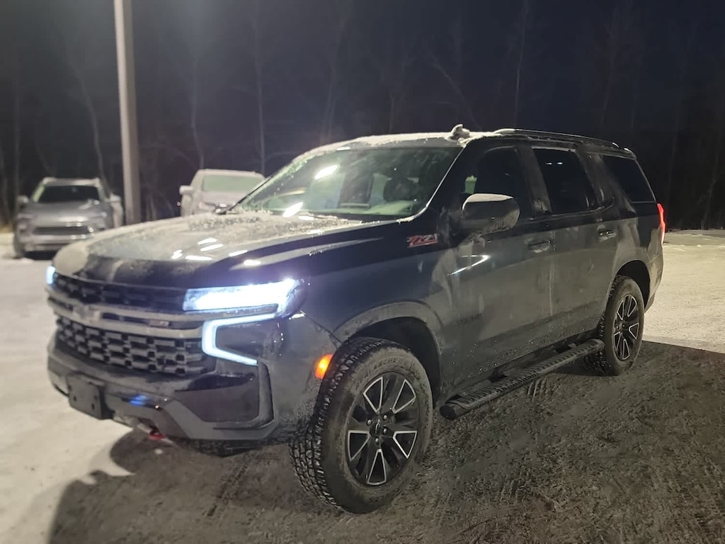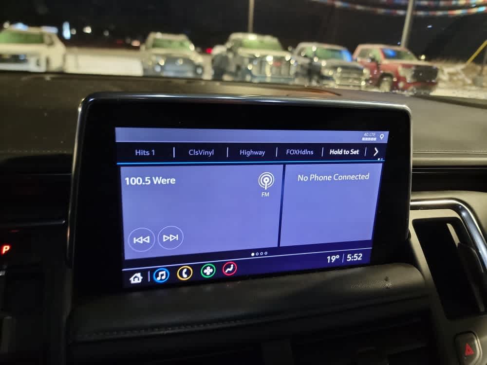 with express-open and close and power sunshade, SEATS, SECOND ROW BUCKET, MANUAL, AM/FM stereo, Bluetooth® audio streaming for 2 active devices, Apple CarPlay® and Android Auto® capable, enhanced voice recognition, in-vehicle apps, cloud connected personalization for select infotainment and vehicle settings. Subscription required for enhanced and connected services after trial period. (STD), with Dynamic Fuel Management, Direct Injection and Variable Valve Timing, includes aluminum block construction (355 hp [265 kW] @ 5600 rpm, 383 lb-ft of torque [518 Nm] @ 4100 rpm) (STD), electronically controlled with overdrive, includes Traction Select System including tow/haul (Most vehicles built on or after 6-7-2021 with a V8 engine will have (NSS) Not Equipped with Automatic Stop/Start, which removes Automatic Stop/Start, Engine control stop/start disable button and its content.) (STD). Chevrolet Z71 with Shadow Gray Metallic exterior and Jet Black interior features a 8 Cylinder Engine with 355 HP at 5600 RPM*.