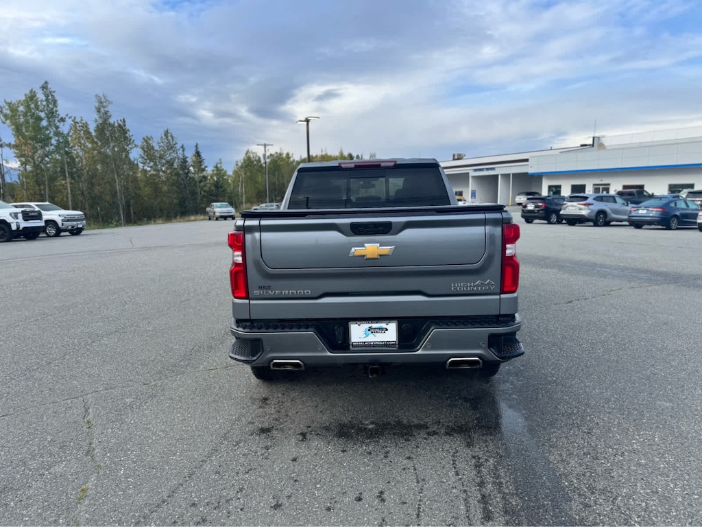(420 hp [313 kW] @ 5600 rpm, 460 lb-ft of torque [624 Nm] @ 4100 rpm); featuring Dynamic Fuel Management that enables the engine to operate in 17 different patterns between 2 and 8 cylinders, depending on demand, to optimize power delivery and efficiency, includes (UEU) Forward Collision Alert, (UHX) Lane Keep Assist with Lane Departure Warning, (UHY) Automatic Emergency Braking, (UKJ) Front Pedestrian Braking, (TQ5) IntelliBeam headlamps, (UE4) Following Distance Indicator, (KSG) Adaptive Cruise Control and (HS1) Safety Alert Seat, on Crew Cab models, with six functional load/access features, NOTE: Auto release can be disabled if ball hitch is installed. See Owner's manual for details, 8" diagonal HD color touchscreen, AM/FM stereo, Bluetooth® audio streaming for 2 active devices, wireless Apple CarPlay® and Android Auto® capable, enhanced voice recognition, additional memory for in-vehicle apps, cloud connected personalization for select infotainment and vehicle settings. Subscription required for enhanced and connected services after trial period. (STD), with overdrive and tow/haul mode. Includes Cruise Grade Braking and Powertrain Grade Braking (STD) Vehicles built with a V8 engine and (MQB) 10-speed automatic transmission will have (NSS) Not Equipped with Automatic Stop/Start, which removes Automatic Stop/Start and its content.). Chevrolet High Country with Satin Steel Metallic exterior and Jet Black interior features a 8 Cylinder Engine with 420 HP at 5600 RPM*.