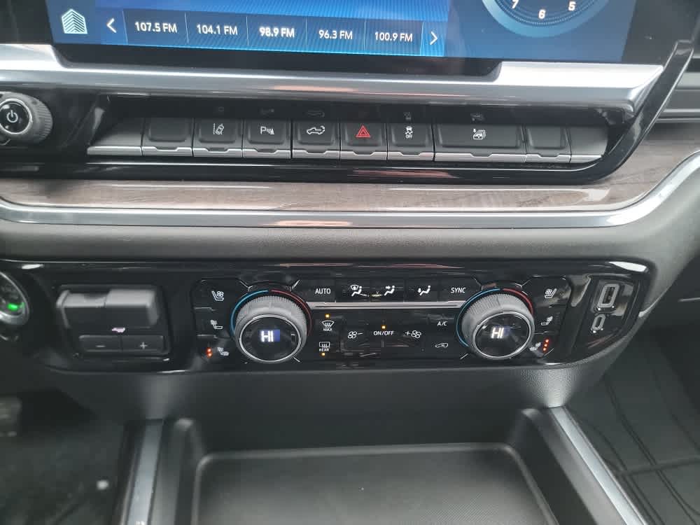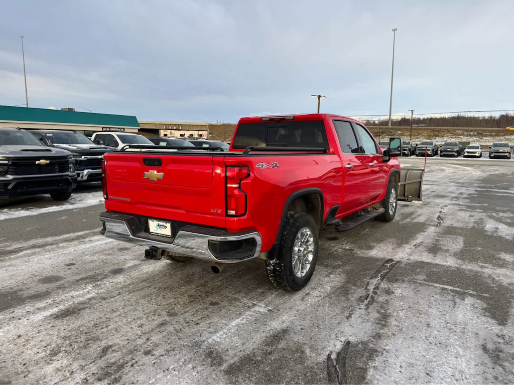includes (PCZ) LTZ Convenience Package, (PCN) LTZ Convenience Package II, (PQB) Safety Package, (CWM) Technology Package, (PYV) 18" machined aluminum wheels and (QF6) LT275/70R18E all-terrain, blackwall tires, includes (A50) bucket seats with (D07) center console, (KQV) heated and ventilated front seats, (QT6) power up/down tailgate, (UF2) bed LED cargo area lighting, (UBC) USB Ports, (UQA) Bose Premium Audio System and (K4C) Wireless Charging, includes (UD7) Rear Park Assist, (UKV) Trailer Side Blind Zone Alert and (UFG) Rear Cross Traffic Alert Includes (HS1) Safety Alert Seat, (UV2) HD Surround Vision, (UVN) Bed View Camera and (TRG) Trailer Camera Provisions.), includes (DRZ) Rear Camera Mirror and (UV6) Multicolor 15" Diagonal Head-Up Display, includes (A48) Rear sliding power window, (UG1) Universal Home Remote, (KA6) Rear heated seats and (KSG) Adaptive Cruise Control. Black (does not include spray-on liner on tailgate due to Black composite inner panel), with six functional load/access features, NOTE: Auto release can be disabled if ball hitch is installed. See Owner's manual for details, with Google built-in compatibility (select service plan required, terms and limitations apply) including navigation capability, 13.4" diagonal HD color touchscreen, includes multi-touch display, AM/FM stereo, Bluetooth® streaming audio for music and most phones; featuring Wireless Apple CarPlay® and Wireless Android Auto® capability for compatible phones, advanced voice recognition, in-vehicle apps, personalized profiles for infotainment and vehicle settings (STD), with Direct Injection and Variable Valve Timing, gasoline, (401 hp [299 kW] @ 5200 rpm, 464 lb-ft of torque [629 N-m] @ 4000 rpm) (STD), (STD), 12-spoke. Chevrolet LTZ with Red Hot exterior and Jet Black interior features a 8 Cylinder Engine with 401 HP at 5200 RPM*.