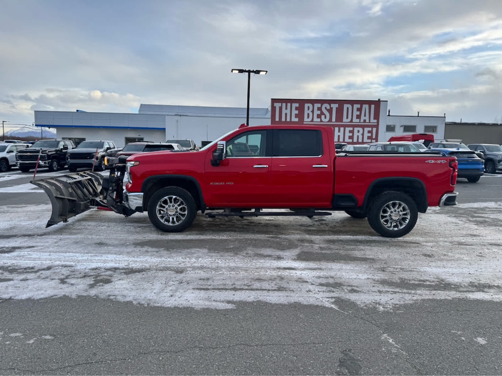 LTZ PREMIUM PACKAGE includes (PCZ) LTZ Convenience Package, (PCN) LTZ Convenience Package II, (PQB) Safety Package, (CWM) Technology Package, (PYV) 18" machined aluminum wheels and (QF6) LT275/70R18E all-terrain, blackwall tires, LTZ CONVENIENCE PACKAGE includes (A50) bucket seats with (D07) center console, (KQV) heated and ventilated front seats, (QT6) power up/down tailgate, (UF2) bed LED cargo area lighting, (UBC) USB Ports, (UQA) Bose Premium Audio System and (K4C) Wireless Charging, SAFETY PACKAGE includes (UD7) Rear Park Assist, (UKV) Trailer Side Blind Zone Alert and (UFG) Rear Cross Traffic Alert Includes (HS1) Safety Alert Seat, (UV2) HD Surround Vision, (UVN) Bed View Camera and (TRG) Trailer Camera Provisions.), TECHNOLOGY PACKAGE includes (DRZ) Rear Camera Mirror and (UV6) Multicolor 15" Diagonal Head-Up Display, LTZ CONVENIENCE PACKAGE II includes (A48) Rear sliding power window, (UG1) Universal Home Remote, (KA6) Rear heated seats and (KSG) Adaptive Cruise Control. CHEVYTEC SPRAY-ON BEDLINER Black (does not include spray-on liner on tailgate due to Black composite inner panel), TAILGATE, MULTI-FLEX with six functional load/access features, NOTE: Auto release can be disabled if ball hitch is installed. See Owner's manual for details, AUDIO SYSTEM, CHEVROLET INFOTAINMENT 3 PREMIUM SYSTEM with Google built-in compatibility (select service plan required, terms and limitations apply) including navigation capability, 13.4" diagonal HD color touchscreen, includes multi-touch display, AM/FM stereo, Bluetooth® streaming audio for music and most phones; featuring Wireless Apple CarPlay® and Wireless Android Auto® capability for compatible phones, advanced voice recognition, in-vehicle apps, personalized profiles for infotainment and vehicle settings (STD), ENGINE, 6.6L V8 with Direct Injection and Variable Valve Timing, gasoline, (401 hp [299 kW] @ 5200 rpm, 464 lb-ft of torque [629 N-m] @ 4000 rpm) (STD), TRANSMISSION, ALLISON 10-SPEED AUTOMATIC (STD), WHEELS, 20" (50.8 CM) BRIGHT CHROME 12-spoke. Chevrolet LTZ with RED HOT exterior and JET BLACK interior features a 8 Cylinder Engine with 401 HP at 5200 RPM*.