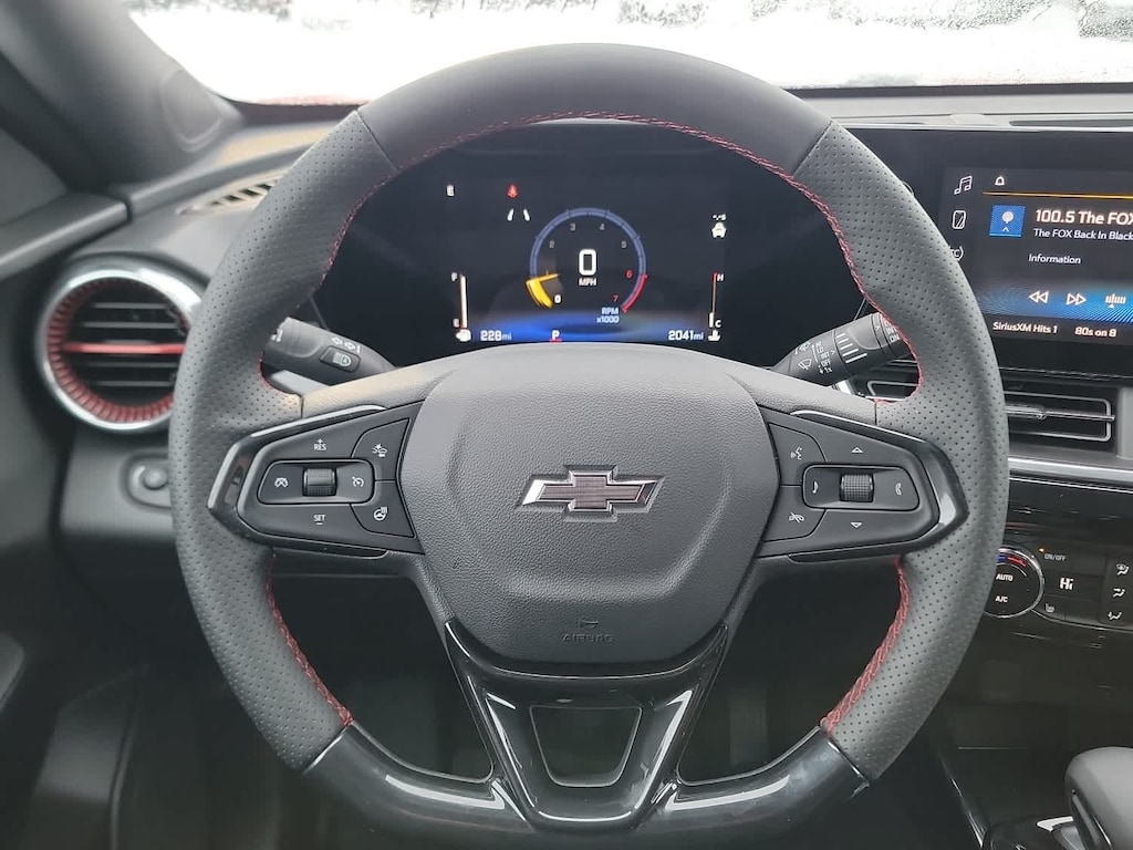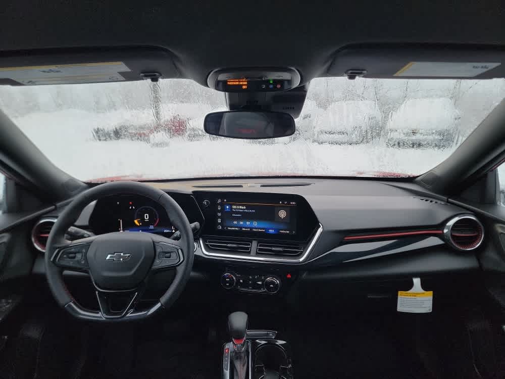 Jet Black. AM/FM stereo. Additional features for compatible phones include: Bluetooth® audio streaming for 2 active devices, voice command pass-through to phone, wireless Apple CarPlay® and wireless Android Auto® capable (STD), E85-compatible (137 hp [102 kW] @ 5000 rpm, 162 lb-ft torque [219 N-m] @ 2500 rpm) (STD), (STD). Chevrolet 2RS with Apex Red exterior and Jet Black with Red accents interior features a 3 Cylinder Engine with 137 HP at 5000 RPM*.