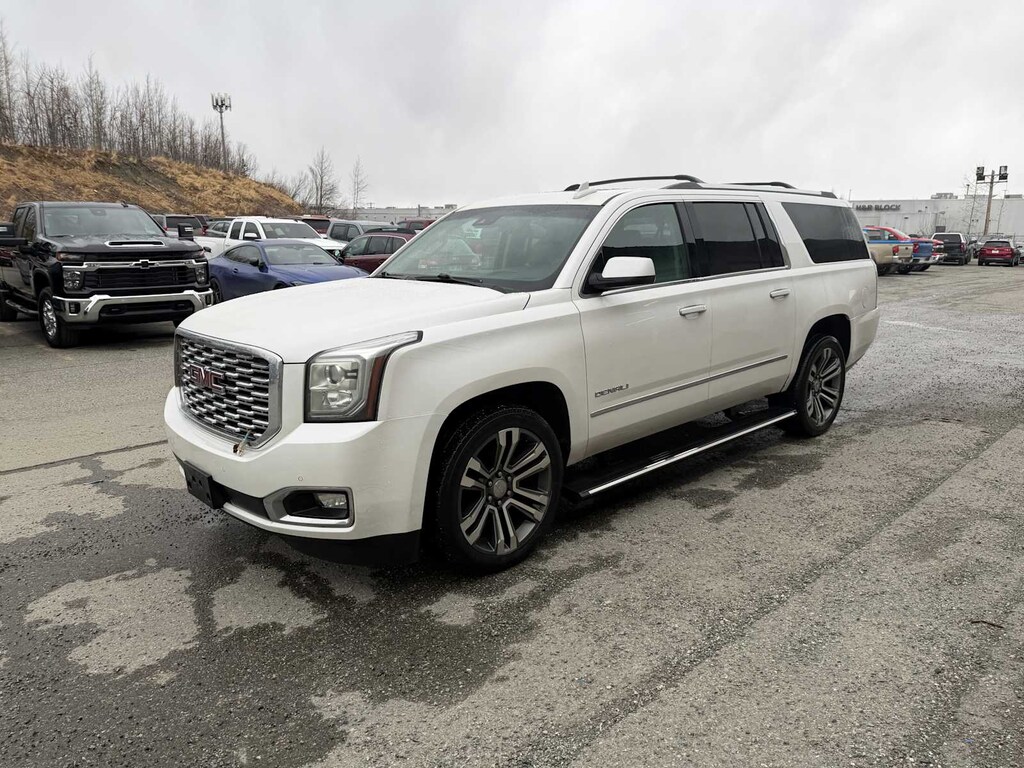 DENALI ULTIMATE PACKAGE includes (PCJ) Open Road Package contents: additional 9 months of SiriusXM Radio and NavTraffic service, (CF5) power sunroof, (U42) rear seat entertainment system, (DNU) third row DVD screen, (UTT) Enhanced Security Package contents: (UTR) self-powered horn, (UTV) interior movement and (UTU) vehicle inclination sensors, (BRS) power-retractable assist steps, (Y66) Adaptive Cruise Control with (UGN) Forward Automatic Braking, (JB1) 4-wheel antilock, 4-wheel disc brakes and (SII) 22" ultra-bright aluminum wheels with Midnight Silver premium paint, ENTERTAINMENT SYSTEM, REAR SEAT BLU-RAY/DVD with remote control, overhead display, Wi-Fi wireless projection capability, four 2-channel wireless digital headphones, auxiliary HDMI/MHL audio/video input and 2 USB ports, ENHANCED SECURITY PACKAGE body security content, includes (UTR) self-powered horn, (UTV) interior movement and (UTU) vehicle inclination sensors, door and liftgate lock shields and glass break sensors in rear quarter glass and liftgate window, removes sunglass holder and conversation mirror from overhead console, LPO, BLACK ROOF RACK CROSS RAILS, (DEALER-INSTALLED), AUDIO SYSTEM, 8" DIAGONAL COLOR TOUCH SCREEN NAVIGATION WITH GMC INFOTAINMENT SYSTEM AM/FM/SiriusXM stereo with seek-and-scan and digital clock, includes Bluetooth® streaming audio for music and select phones; voice-activated technology for radio and phone; and Shop. Featuring Apple CarPlay® and Android Auto® capability for compatible phone; 5 USB ports and 1 auxiliary jack (STD), ENGINE, 6.2L ECOTEC3 V8 with Active Fuel Management, Direct Injection and Variable Valve Timing, includes aluminum block construction (420 hp [313 kW] @ 5600 rpm, 460 lb-ft of torque [624 N-m] @ 4100 rpm) (STD), TRANSMISSION, 10-SPEED AUTOMATIC electronically controlled with overdrive, tow/haul mode and tap up/tap down shifting (STD). GMC Denali with White Frost Tricoat exterior and Jet Black interior features a 8 Cylinder Engine with 420 HP at 5600 RPM*.