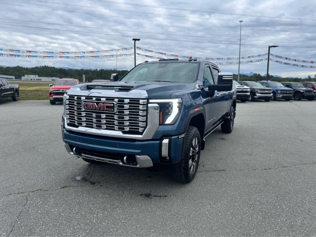 (470 hp [350.5 kW] @ 2800 rpm, 975 lb-ft of torque [1322 Nm] @ 1600 rpm) (Includes (K05) engine block heater.), includes (DRZ) Rear Camera Mirror and (UV6) Multicolor 15" Diagonal Head-Up Display (Includes (KSG) Adaptive Cruise Control. (dealer-installed), ASSIST STEPS, POWER-RETRACTABLE, WITH LED PERIMETER LIGHTING AND BRIGHT ACCENT, includes color touch-screen, multi-touch display, AM/FM stereo, Bluetooth® streaming audio for music and most phones; featuring wireless Android Auto® and Apple CarPlay® capability for compatible phones (STD), TRANSMISSION, ALLISON 10-SPEED AUTOMATIC. GMC Denali with Downpour Metallic exterior and Jet Black interior features a 8 Cylinder Engine with 470 HP at 2800 RPM*.