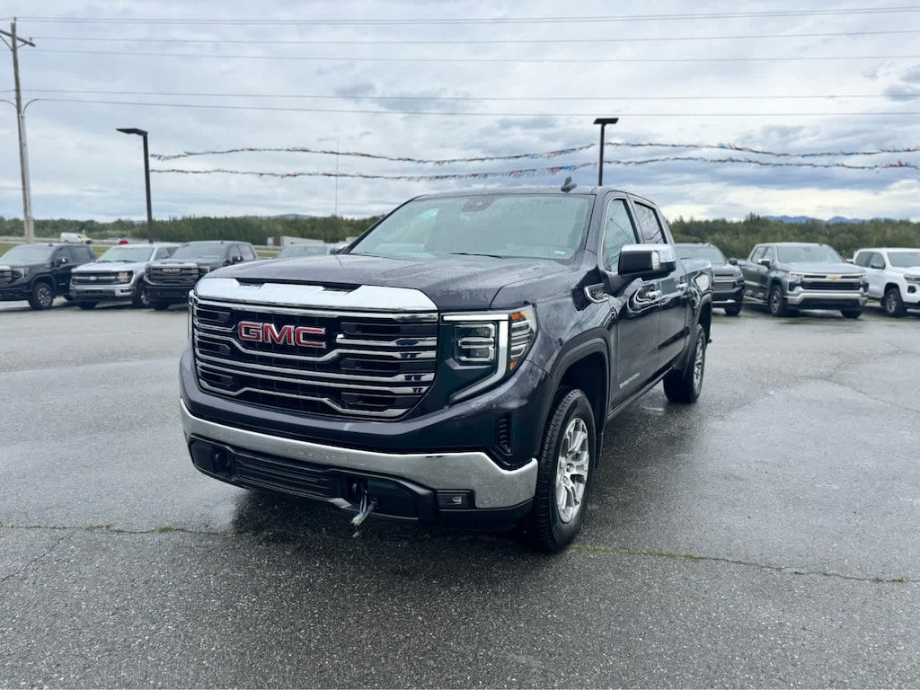 AUDIO SYSTEM, 13.4" DIAGONAL PREMIUM GMC INFOTAINMENT SYSTEM WITH GOOGLE BUILT IN APPS SUCH AS NAVIGATION AND VOICE ASSISTANCE, INCLUDES COLOR TOUCH-SCREEN, MULTI-TOUCH DISPLAY, AM/FM STEREO Bluetooth® streaming audio for music and most phones; featuring wireless Android Auto® and Apple CarPlay® capability for compatible phones (STD), ENGINE, 5.3L ECOTEC3 V8 (355 hp [265 kW] @ 5600 rpm, 383 lb-ft of torque [518 Nm] @ 4100 rpm); featuring Dynamic Fuel Management (STD), TRANSMISSION, 10-SPEED AUTOMATIC, (COLUMN SHIFTER) ELECTRONICALLY CONTROLLED with overdrive and tow/haul mode. Includes Cruise Grade Braking and Powertrain Grade Braking (STD). GMC SLT with Titanium Rush Metallic exterior and Jet Black interior features a 8 Cylinder Engine with 355 HP at 5600 RPM*.