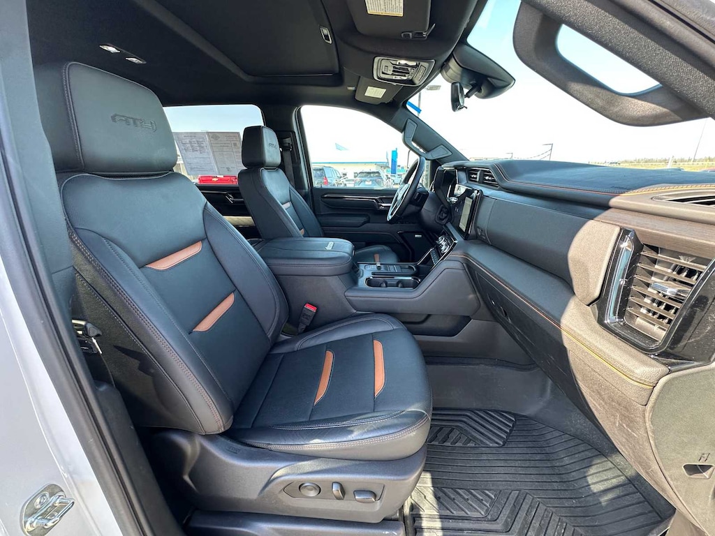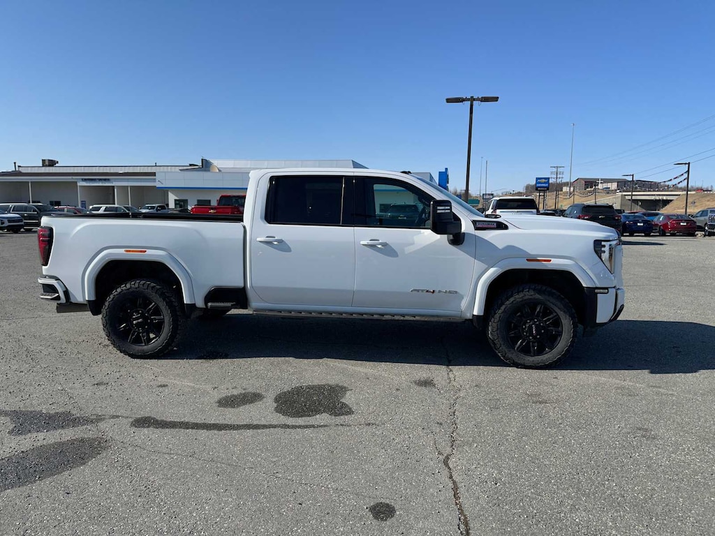 includes (PDO) AT4 Preferred Package, (CF5) power sunroof, (CWM) Technology Package and (VXW) AT4 high clearance step, LPO, includes (DRZ) Rear Camera Mirror and (UV6) Multicolor 15" Diagonal Head-Up Display, includes (UG1) Universal Home Remote, (A48) rear sliding power window and (U01) Roof Marker Lamps, (includes AT4 logo), includes color touch-screen, multi-touch display, AM/FM stereo, Bluetooth® streaming audio for music and most phones; featuring wireless Android Auto® and Apple CarPlay® capability for compatible phones (STD), TRANSMISSION, ALLISON 10-SPEED AUTOMATIC. GMC AT4 with Summit White exterior and Jet Black with Kalahari accents interior features a 8 Cylinder Engine with 401 HP at 5200 RPM*.