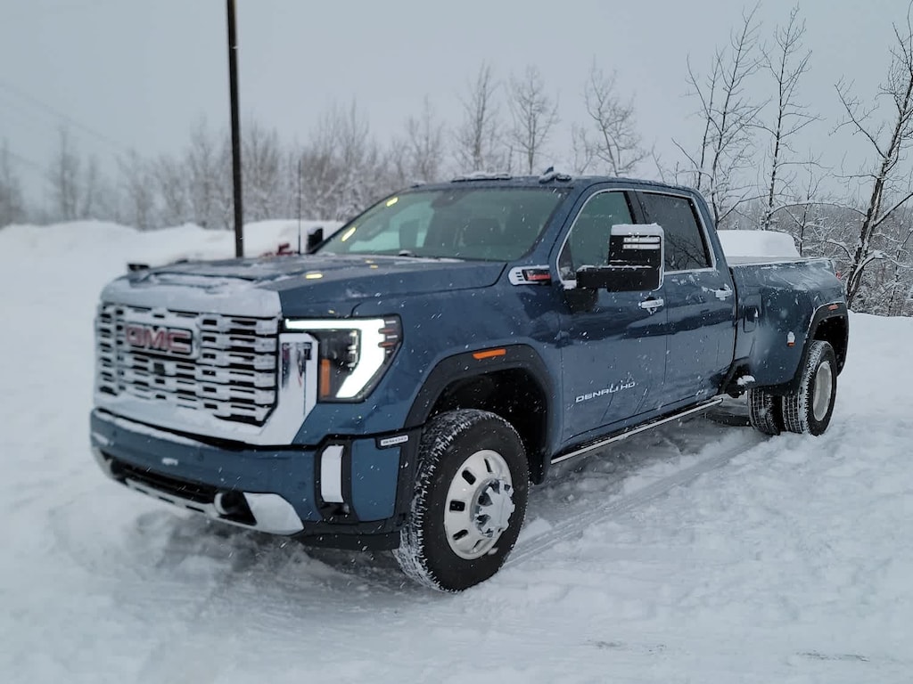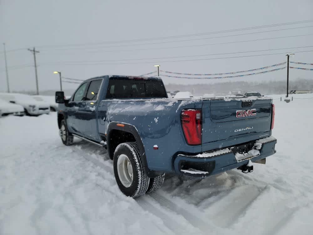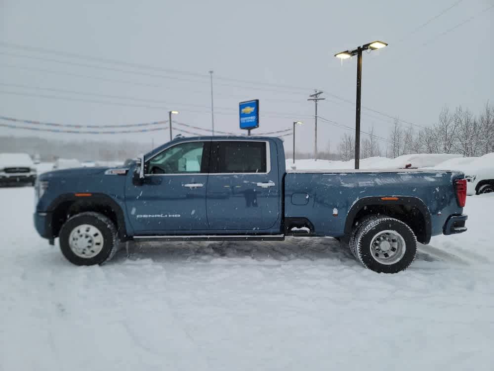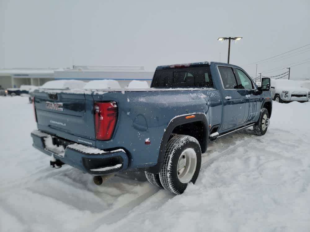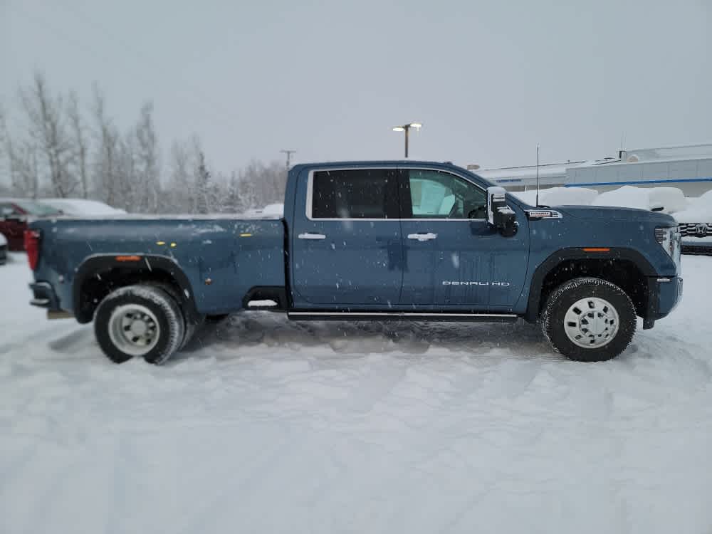 ENGINE, DURAMAX 6.6L TURBO-DIESEL V8, B20-DIESEL COMPATIBLE (470 hp [350.5 kW] @ 2800 rpm, 975 lb-ft of torque [1322 Nm] @ 1600 rpm) (Includes (K05) engine block heater.), ASSIST STEPS, POWER-RETRACTABLE with LED perimeter lighting and bright accent, TECHNOLOGY PACKAGE includes (DRZ) Rear Camera Mirror and (UV6) Multicolor 15" Diagonal Head-Up Display, GOOSENECK / 5TH WHEEL PREP PACKAGE -- Hitch platform to accept Gooseneck or 5th Wheel hitch. Includes hitch platform with tray to accept ball, stamped bed holes with removable caps installed and bed mounted 7-pin trailer harness (similar to UY2 harness). GVWR, 14,000 LBS. (6350 KG) WITH DUAL REAR WHEELS, AUDIO SYSTEM, 13.4" DIAGONAL PREMIUM GMC INFOTAINMENT SYSTEM with Google built in apps such as navigation and voice assistance, includes color touch-screen, multi-touch display, AM/FM stereo, Bluetooth® streaming audio for music and most phones; featuring wireless Android Auto® and Apple CarPlay® capability for compatible phones. (STD), TRANSMISSION, ALLISON 10-SPEED AUTOMATIC. GMC Denali with Downpour Metallic exterior and Jet Black interior features a 8 Cylinder Engine with 470 HP at 2800 RPM*.