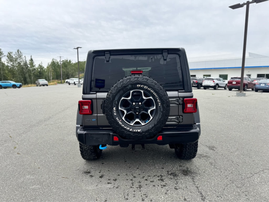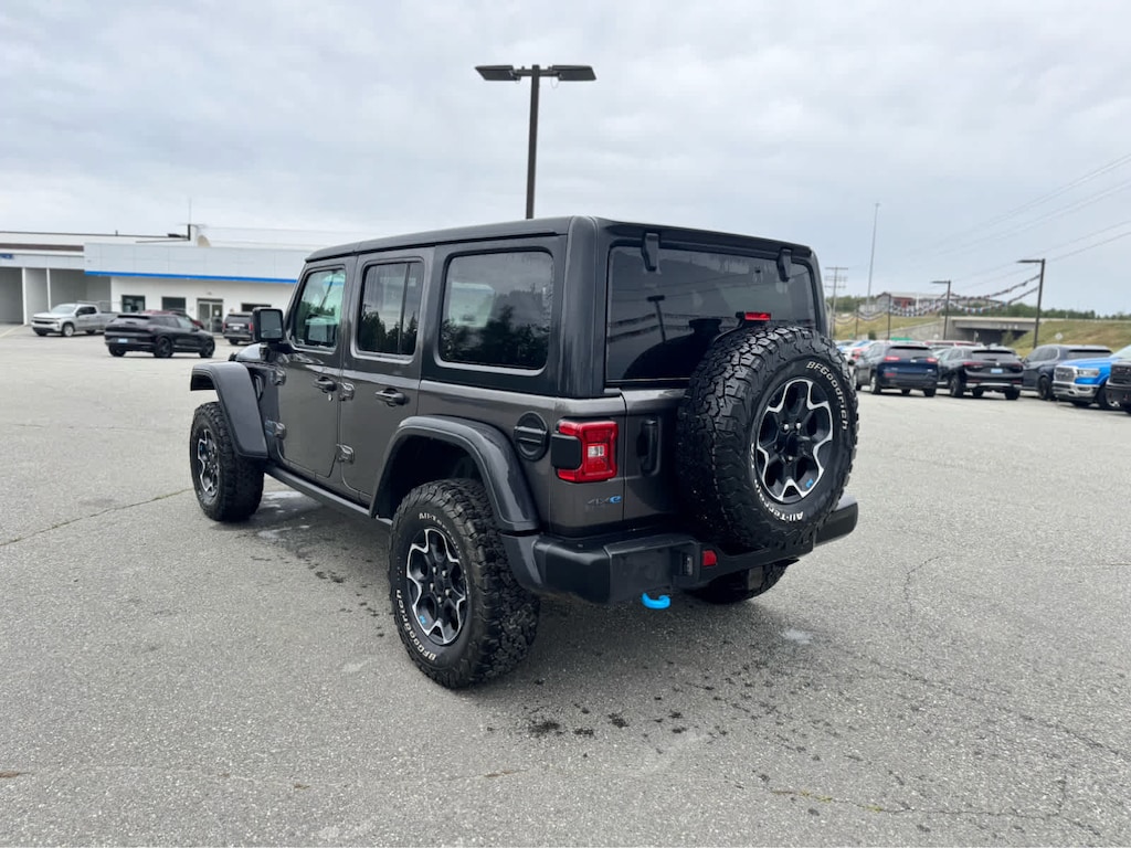 BLACK, LEATHER TRIMMED BUCKET SEATS Premium Wrapped I/P Bezels, Leather Wrapped Shift Knob, Premium Door Trim Panel, BLACK 3-PIECE HARD TOP Freedom Panel Storage Bag, Rear Window Defroster, Rear Window Wiper/Washer, No Soft Top, COLD WEATHER GROUP Heated Steering Wheel, Remote Start System, Heated Front Seats, TRAILER TOW & HD ELECTRICAL GROUP Class II Receiver Hitch, 700 Amp Maintenance Free Battery, 7 & 4 Pin Wiring Harness, Auxiliary Switches, TRANSMISSION: 8-SPEED AUTO 8P75PH PHEV (STD), ENGINE: 2.0L I4 DOHC DI TURBO PHEV (STD). Jeep Unlimited Rubicon with Granite Crystal Metallic Clearcoat exterior and Black interior features a 4 Cylinder Engine with 375 HP at 5250 RPM*.