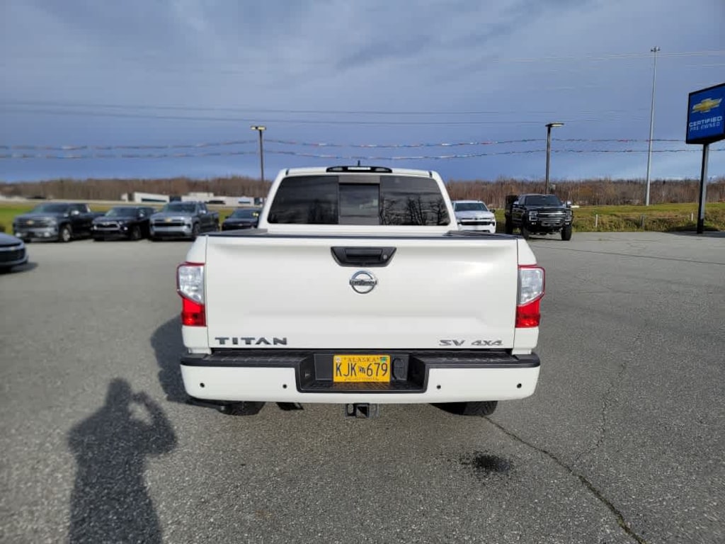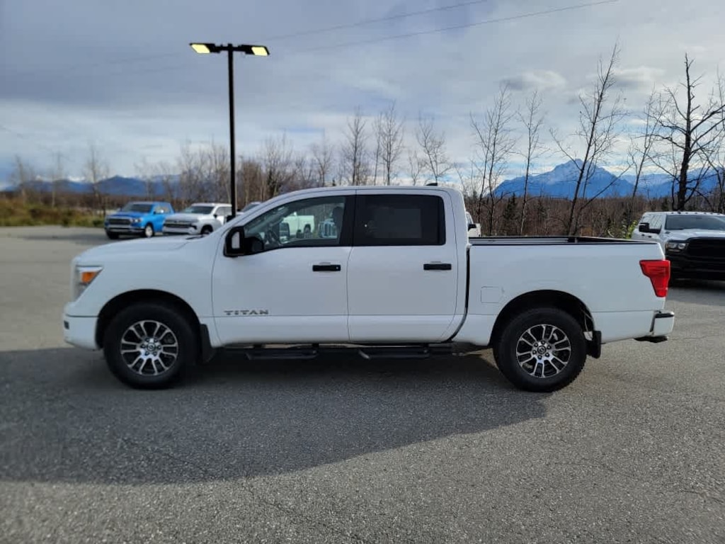 NissanConnect Services, Leather-Wrapped Steering Wheel, Auto-Dimming Rearview Mirror, Front & Rear Parking Sensors, Radio: NissanConnect w/Navigation, NissanConnect w/navigation, 9" touchscreen display, Nissan door to door navigation w/3D building graphics and satellite imagery, connected navigation features including online POI search, over-the-air map updates, online premium traffic information, SiriusXM Traffic, SiriusXM Travel Link (weather, fuel prices, movie listings, stock info, sports and parking) and TomTom weather, 2 Illuminated USB-A Ports In Back Of Center Console, Charge only, Rear HVAC Vents, Dual Illuminated Vanity Mirror Front Sun Visors, extension, Intelligent Key System, driver and passenger request switches, Convex Spotter Mirror, Power Sliding Rear Window w/Defogger, 2 molded plate keys, 120V Outlet in Bed, Utilitrack System w/4 Tie-Down Cleats, (3 upper channels only), LED Tailgate Area Illumination, Rain Sensing Wipers, LED Under Rail Bed Lighting, Flat Floor Function w/Tie Down Hooks, storage box w/removable divider and lockable lid, Rear Utility Bed Step, Spray-On Bedliner, Auto-Dimming Rearview Mirror w/UGDO, Universal Garage Door Opener, Electronic Locking Tailgate, Heated Manually Extendable Tow Mirrors, Puddle Lamps, Trailer Brake Controller, Receiver Hitch, Trailer Light Check Function On Key Fob, 4-Pin/7-Pin Wiring Harness Connector (Rear Bumper), LOOP SIDE STEPS, crew cab interior door scuff protection, off-road adventure kit, adventure medic kit and high-wall floor liners. Nissan SV with Glacier White exterior and Black interior features a 8 Cylinder Engine with 400 HP at 5800 RPM*.
