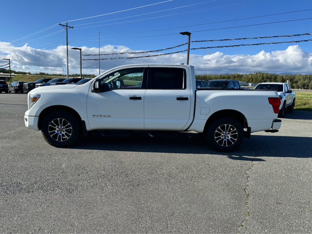 SV CONVENIENCE PACKAGE NissanConnect Services, Leather-Wrapped Steering Wheel, Auto-Dimming Rearview Mirror, Front & Rear Parking Sensors, Radio: NissanConnect w/Navigation, NissanConnect w/navigation, 9" touchscreen display, Nissan door to door navigation w/3D building graphics and satellite imagery, connected navigation features including online POI search, over-the-air map updates, online premium traffic information, SiriusXM Traffic, SiriusXM Travel Link (weather, fuel prices, movie listings, stock info, sports and parking) and TomTom weather, 2 Illuminated USB-A Ports In Back Of Center Console, Charge only, Rear HVAC Vents, Dual Illuminated Vanity Mirror Front Sun Visors, extension, Intelligent Key System, driver and passenger request switches, Convex Spotter Mirror, Power, SV UTILITY PACKAGE 2 molded plate keys, 120V Outlet in Bed, Utilitrack System w/4 Tie-Down Cleats, (3 upper channels only), LED Tailgate Area Illumination, Rain Sensing Wipers, LED Under Rail Bed Lighting, Flat Floor Function w/Tie Down Hooks, storage box w/removable divider and lockable lid, Rear Utility Bed Step, Spray-On Bedliner, Auto-Dimming Rearview Mirror w/UGDO, Universal Garage Door Opener, Electronic Locking Tailgate, SV TOW PACKAGE Heated Manually Extendable Tow Mirrors, Puddle Lamps, Trailer Brake Controller, Receiver Hitch, Trailer Light Check Function On Key Fob, 4-Pin/7-Pin Wiring Harness Connector (Rear Bumper), LOOP SIDE STEPS, OFF ROAD PROTECTION PACKAGE crew cab interior door scuff protection, off-road adventure kit, adventure medic kit and high-wall floor liners. Nissan SV with Glacier White exterior and Black interior features a 8 Cylinder Engine with 400 HP at 5800 RPM*.